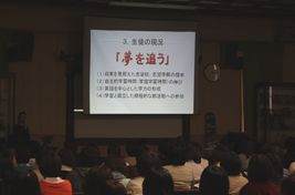 遅い時間にも関わらず大変多くの中学生、保護者のみなさんに出席いただきました。ありがとうございました。