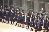 握手を交わす代表 2・3年生の校歌に聴き入る1年生