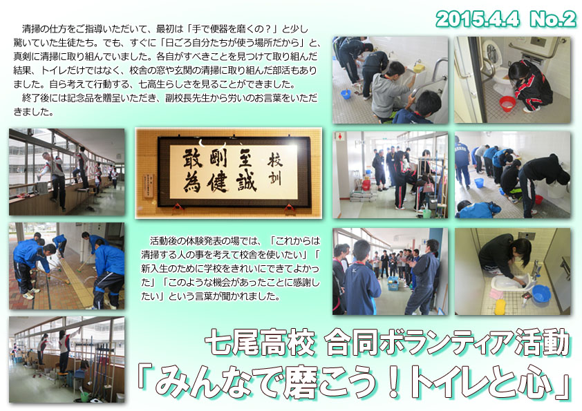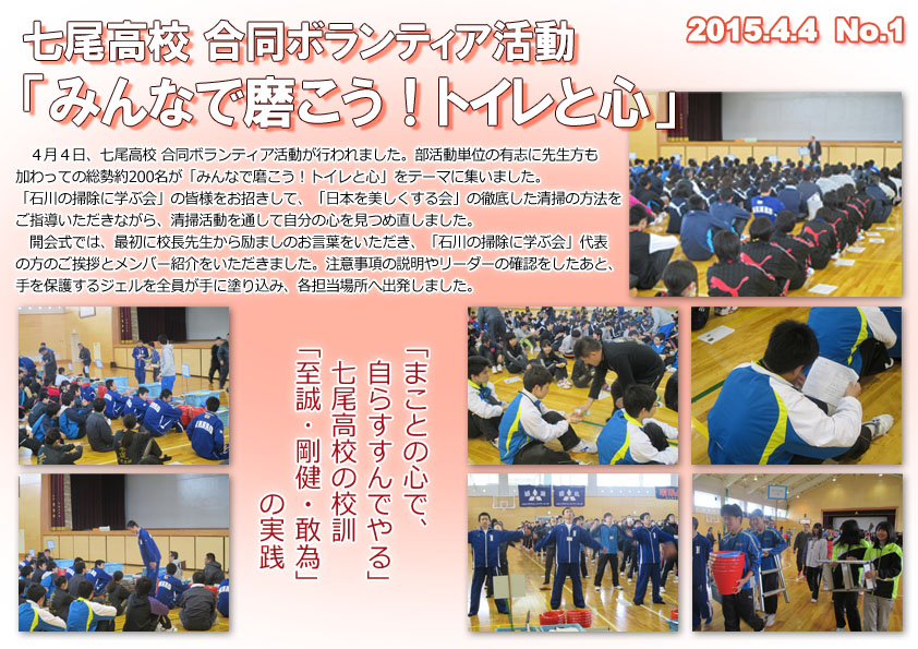 七尾高校の様々な部活動が、合同で学校中のトイレをきれいにする清掃ボランティアを行いました!