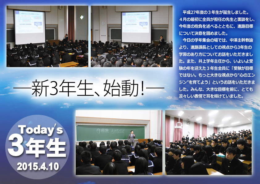 4月8日(水)に始業式が行われ、新学期がスタートしました。井下守校長先生から、4月4日(土)に行われた清掃ボランティア活動の話をまじえ、「自分の心を耕しながら、日々の活動に取り組んでほしい」と激励のお言葉を頂きました。