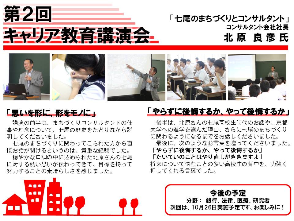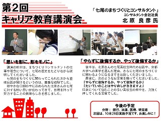 今回は、本校卒業生でもある北原良彦氏をお招きして、まちづくりコンサルタントについてお話しいただきました。