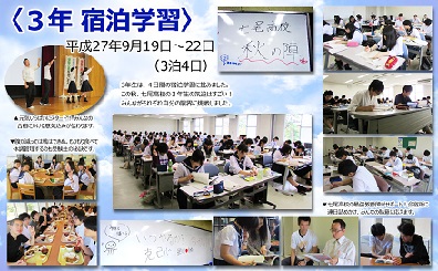 学習時間だけでなく休憩時間にも机に向かう姿が見られ、学習意欲の高まりを感じました。グループエンカウンターでは「おもしろい人が多いことに気づいた」と話す生徒が多く、クラスメイトの新たな一面を知る良い機会となったようです。