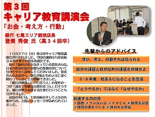七尾高校では、職業に対する理解を深め、自らの将来についてより深く考えることを目的とし、年6回のキャリア教育講演会を実施しています。