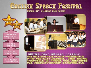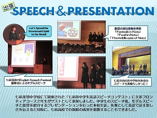 七尾東部中学校で「七尾市中学生英語スピーチコンテスト」が開催され、七尾高校文系フロンティアコースの生徒がゲストとして参加しました。
