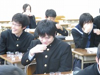 「おいしさを構成する要素」,「甘味・酸味・塩見・苦み・うま味を感じる濃さの違い」等について学習し,実際に味を体験しました。また,「相乗効果」「対比作用」「抑制効果」といった,味の相互作用について学習し,相乗効果を体験しました。最後に,カニカマ開発の歴史について学び,カニカマの試食をしました。