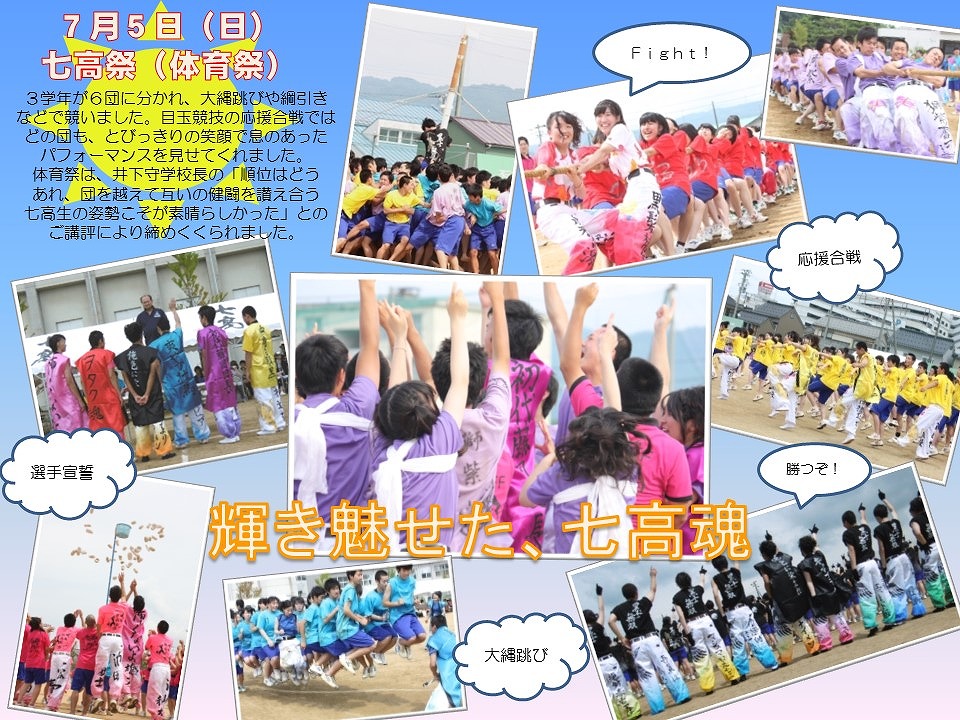 | 今年の七高祭は、3日間で過去最高1680名の来校者がありました。 保護者、小中学生、地域の皆様、 ご来場ありがとうございました。 |