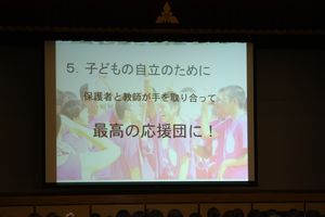 本日、PTA総会が行われました。主に、総会、学校プレゼンテーション、学年集会が行われ、本校学校生活紹介のビデオの上映や今年度の本校の重点目標と具体的取り組みについての説明を行いました。