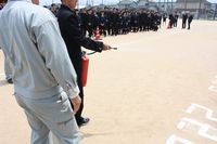 本日、避難訓練が行われました。考える力、情報を集める力、行動力の三つの力を身に付けること、また普段からこれらを意識して高校生活を送ることが大切であると、消防署の方からお話していただきました。その後、体育委員代表の生徒が消火器の使い方について学びました。