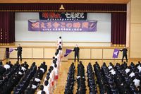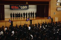 総体、総文の入賞報告会が行われました。また、全国大会、北信越大会の壮行式が行われました。