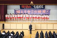 他の部活動に先駆け、陸上部壮行式が行われました。学校長からは、自分自身の壁を乗り越えて、一秒でも一メートルでも記録を更新してほしいと激励しました。