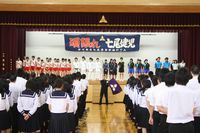 27日(火)の壮行式にむけて行われてきた応援歌練習が最終日をむかえました。昨日までは、生徒会執行部や、応援団の生徒たちから大きな声で歌うよう言われていましたが、最終日となる本日は、この5日間で一番大きな声で応援歌を歌っていました。
