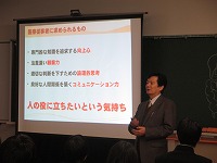 キャリア教育講演会 投稿日時 : 2015/01/15 yashiki さはらファミリークリニック院長 佐原博之先生による講演会が行われました。 「医学で学ぶこと医療現場で働くこと」というテーマでした。 「医師は科学者であり研究者でもある」 「医療現場はオーケストラ」「医師は指揮者」 「医師には,向上心,観察力・論理的思考力・コミュニケーション力,そして何よりも人の役に立ちたいという気持ちが大切」 「頂は目指さないとたどり着けない」 といった,わかりやすく力強い表現で医学と医療について話をしていただきました。 Tweet