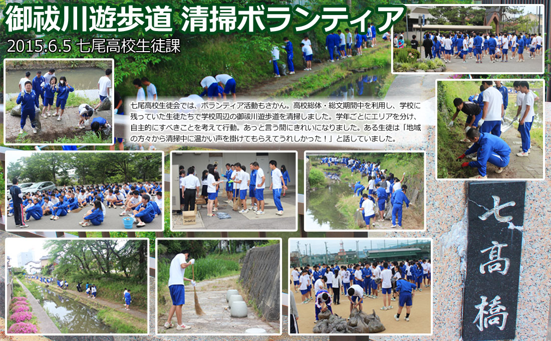 【生徒会】 御祓川遊歩道 清掃ボランティア! 投稿日時 : 2015/06/08 nanafh 総体・総文期間中の金曜日、学校に残っていた生徒みんなで、学校周辺の御祓川遊歩道の清掃活動に取り組みました。みんなの真摯な姿、立派でしたよ! Tweet