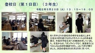 約1月半ぶりの登校日の様子をお伝えします。生徒は3密を避けながらクラスメートとの再会を喜び、今後の学校生活への意欲を示していました。生徒からは、「オンラインでなく、直接会うことでみんなとの絆を確認できた。」という声が聞けました。次回の登校日は5月25日(月)です。