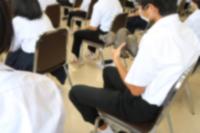 7月18日(金) 1学期終業式が行われました。校歌斉唱と学校長式辞のあと、各種大会の表彰伝達、スタンダードコンクールの表彰、部活動での体調管理のことやタブレットの使い方についての話がありました。また、飛翔祭の団決めの抽選会も行われました。
