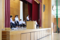 7月19日(金) 1学期の終業式が行われました。学校長より時間の使い方について話があった後、生徒会の進行で、生徒指導から自分の命は自分で守ること、養護教諭から健康面で気をつけることなどが話されました。また、表彰や飛翔祭の団決めなども行いました。
