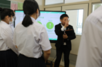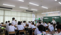 6月10日(月) 中能登教育事務所より指導主事の先生をお迎えして、3年生英語科の研究授業が行われました。友だちから質問を受けたり友だちの考えを聞いたりして、自分の好きな人物をわかりやすく紹介しました。