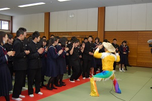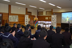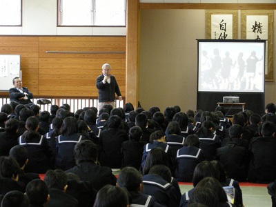・明日は私立高校の一般入試です。1年生の職業講話が午後、本校武道館で行われます。