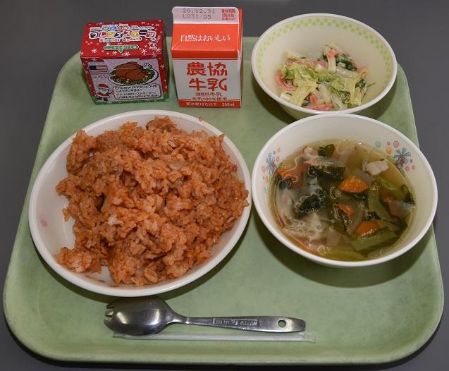 大変な年だった2020。本校は今日が最後の1日となりました。各学年では学年集会が行われ、放送による終業式となりました。給食も最後で、クリスマスイブのためケーキもつきました。玄関ではクリスマスの飾りがきれいに輝いていました。午後からは昨日に続いて保護者懇談が行われています。新学期は1月8日からになります。皆様、よいお年をお迎えください。