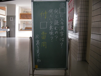 校長先生が頻繁に出題する四文字熟語のクイズです。生徒玄関に掲示してあります。