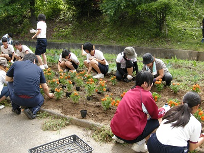 育友会環境委員会主催の奉仕作業がありました。除草作業や花壇・プランターへの花の苗の植え付けなどたくさんの作業をしていただきました。保護者・生徒の皆さん、本当にご苦労様でした。