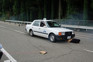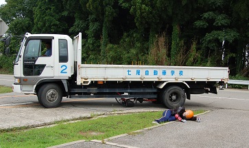 七尾自動車学校のコースを使って正しい通行方法の指導を受けました。