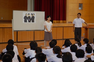 七尾警察署生活安全課の方をお招きして1年生対象のピュアキッズスクールが行われました。テーマは「いじめ」。岩手県の事件のこともあり、タイムリーなお話となりました。