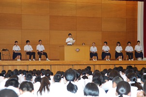 校内私の主張大会が行われました。それぞれの学年の代表が、体育館の壇上から全校生徒に向けて発表をしました。緊張感の中、学年の代表として堂々と自分の主張を発表する姿はとても輝いていました。
