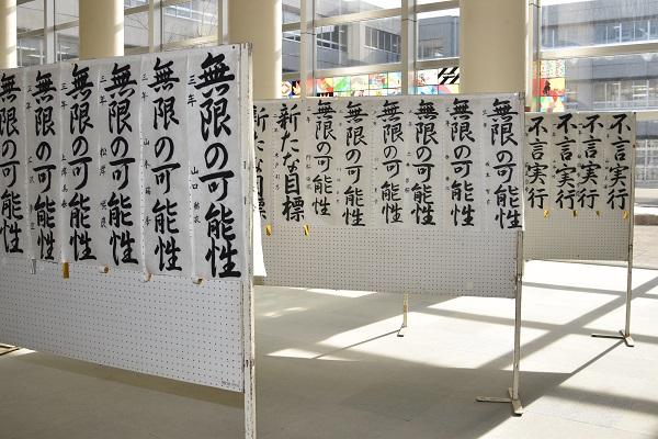 希望の広場に各学年の書き初め入賞作品が展示されています。どの作品も甲乙付けがたい力作ばかりです。
