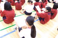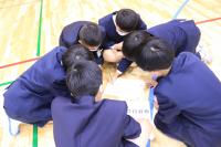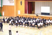 午後からは、来年度入学する小学校6年生と、その保護者にお越しいただき学校説明会を行いました。6年生対象のエンカウンターの進行は、本校2年生の学級会長と副会長が行いました。始めは緊張していた6年生でしたが、進行の2年生の声かけもあり他の小学校の友だちと楽しく交流することができました。