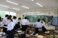 6月13日(木) 中能登教育事務所および七尾市教育委員会より指導主事の方々にお越しいただき3年生体育の研究授業が行われました。また、2名の教育実習生の研究授業(2年生英語・1年生国語)も行いました。