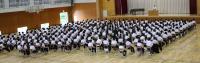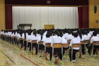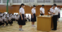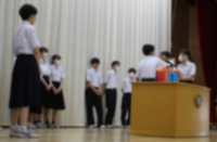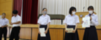7月19日(金) 1学期の終業式が行われました。学校長より時間の使い方について話があった後、生徒会の進行で、生徒指導から自分の命は自分で守ること、養護教諭から健康面で気をつけることなどが話されました。また、表彰や飛翔祭の団決めなども行いました。