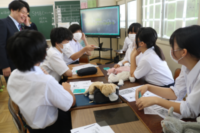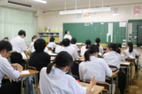 9月12日(木) 中能登教育事務所の指導主事の先生をお迎えして、1年国語研究授業が行われました。友だち同士話し合う中から、題名に込められた意味は何かを考えることができました。