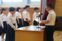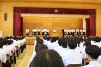 9月27日(金) 後期生徒会任命式がありました。学校長より任命証が渡されたあと、生徒会長が全校生徒の前で抱負を伝えました。