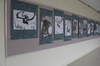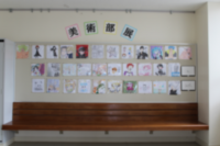 1階廊下には、美術作品がずらりと貼られています。また、粘土作品や美術部の作品展示も行われます。飛翔祭にお越しいただいたときには、ぜひご覧ください。