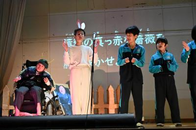 児童生徒による学習発表(ステージ発表・音楽発表)では、子供たちの台詞や音楽に合わせて観客席から手拍子が起こる等温かい雰囲気に会場が包まれました。高等部による模擬店や作業製品販売は、心がこもった接客で大盛況でした。また、作品展示や事業所の販売等もあり大変賑わいました。