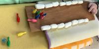 すごろくには、ひなまつりに関する歌、早口言葉、福笑い、クイズやミニボウリング、ジャンケン、記念撮影などのマスがあります。「ひなまつりすごろく」は今年で2回目ですが、マスの内容は新しくなりました。家族の方も一緒に参加してすごろくを楽しみました。