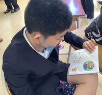 式では、家族の協力を得て1月中に作った『わたしの年表』を披露し、将来の夢や希望・目標の発表(VOCA(ビッグマック)を使って発表)をしました。また、家族や学校の先生方、病院・訪問看護師の方々からの応援メッセージの披露もしました。揃いのコサージュを身に着けて参加してくれた家族と一緒に、校歌や、二分の一成人式のテーマソングの「いのちの歌」を聴きました。最後に節分の豆まきをして、福を招きました。