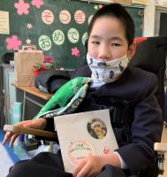 今年の4月から成人年齢が満18歳になります。在宅訪問学級では、満9歳の小学部3年生の段階で「二分の一成人式」を行いました。在宅訪問学級は、各家庭で授業を行っているため、式もそれぞれの家で行いました。