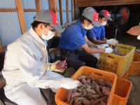 22日(火)、24日(木)には農事組合法人能登やまびこへ実習に行きました。カブの収穫では10cm程度の大きさのものを収穫し、葉を切り、洗浄機できれいにしました。サツマイモの土落とし作業では、大洋農産で学んだことを活かし、土を落としたり、虫食いやカビが生えたイモを除外したりすることができました。