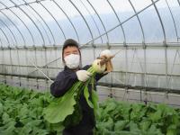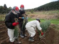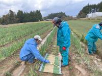4月18日(月)、19日(火)、21日(木)、農事組合法人なたうちへ農業実習へ行きました。今回の実習ではネギの収穫、小菊カボチャ苗の定植、稲の苗箱運びを行いました。また秋に植えた玉ねぎが成長している様子や、越冬ネギ畑の見学も行いました。