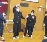 3月7日(火)に高等部の「卒業生を送る会」がありました。1年生は「アカペラドン!」、2年生は「すごろく」で3年生とともに楽しみました。3年生は「ダンス&共同制作」を披露しました。共同制作では、いきものがかりの「エール」という曲のせて絵を描き、歌詞にも注目して絵が完成するのを見届けました。在校生や教員へのお別れや感謝を表現し、会場を沸かせました。高等部3年生の学校生活最後の思い出の残る会になりました。