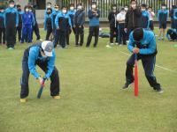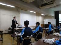 障害を持っていても実施できるスポーツがあることや、障害者スポーツの魅力や楽しさを知ってもらうために授業で取り組んでいるサッカーに関連したウォーキングフットボールを体験しました。