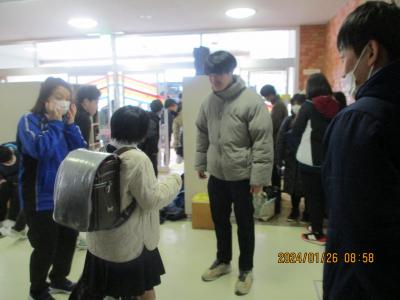 1月26日金曜日 飲料・昼食持参、スクールバスは一路線休止という形でしたが、再開することができました。また1月29日月曜日からはスクールバス全路線の運行を再開しています。