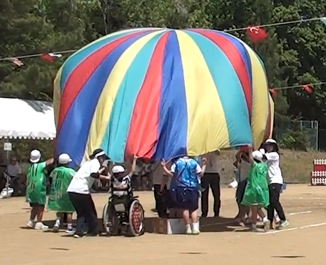 今年度から小学部の児童も午後参加することとなったため、午後に全校種目の大玉転がしが追加され、例年以上に盛り上がった運動会となりました。