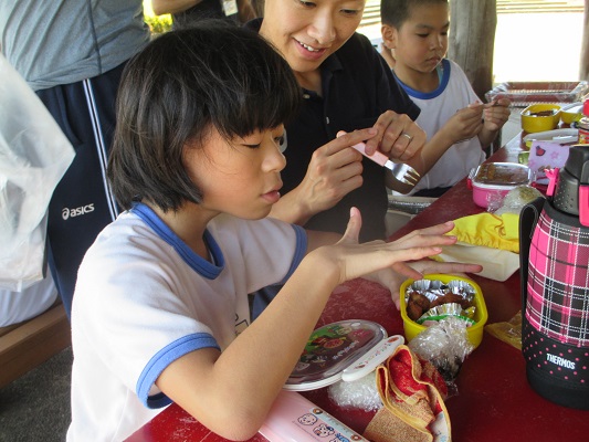 10月1日(火)に秋の遠足で「志賀町いこいの村」へ行ってきました。今回の遠足は、昼食を自分で作って持っていくことになり、事前学習では何度もおにぎり作りの練習を頑張りました。その成果もあってか当日は皆スムーズにお弁当を作ることができました。