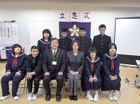 2月6日(水)に立志式が行われました。校長先生や教頭先生、中学部主事に見守られ、厳粛な雰囲気の中、2年生の9名は「大人への第一歩」を踏み出しました。