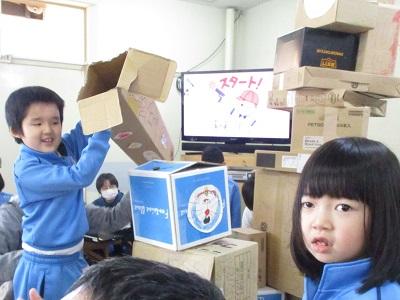 低学年は「6年生応援団」になって、春から中学部へ行く6年生へ応援ダンスを披露しました。中学年からの「箱積みゲーム」では、少しでも高く積もうと職員含め全体が大盛り上がりでした。5年生からの「ビンゴゲーム」では、ビンゴの景品獲得に向け集中している児童の姿が見られました。