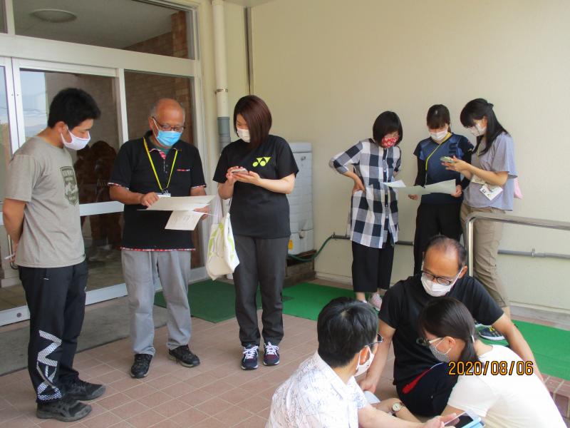 嘔吐物の処理方法や児童の避難方法を確認した後、児童が食堂で嘔吐したケースを想定した実技演習を行いました。