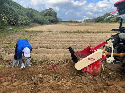 10月17日(火)、10月23日(月)に大洋農産加工株式会社へ農業実習に行きました。実習ではサツマイモの収穫とトラクターでの収穫の補助をしました。サツマイモの蔓と実を分け、選別し、他の品種と混ざらないように列ごとに箱に入れました。サツマイモを商品として出荷することを意識して、傷つけないように気を付けて取り組みました。トラクターで土を起こした畑からサツマイモを手で堀り、乾かすといった学校ではできない収穫補助など生徒たちにとって貴重な体験させて頂きました。